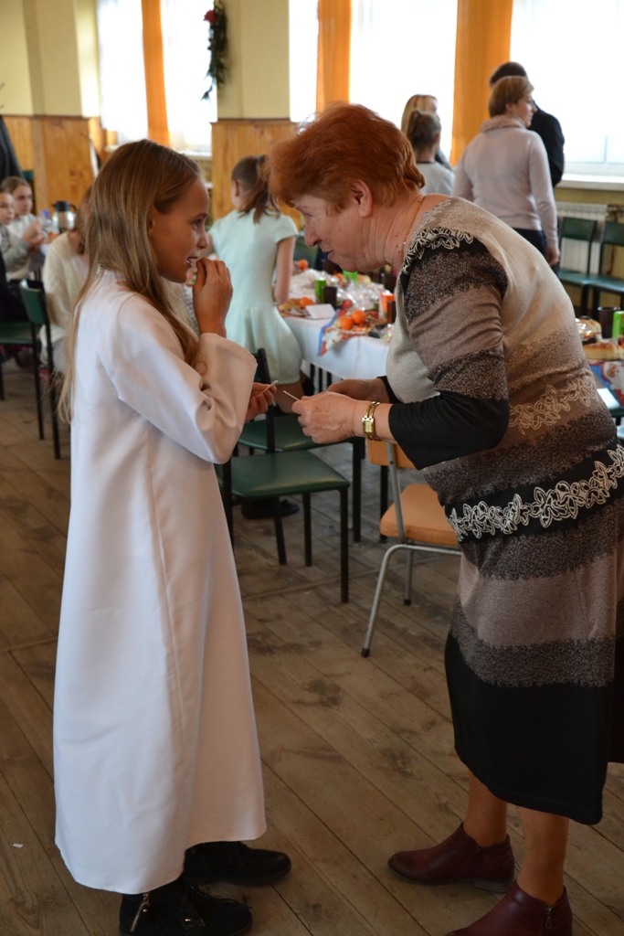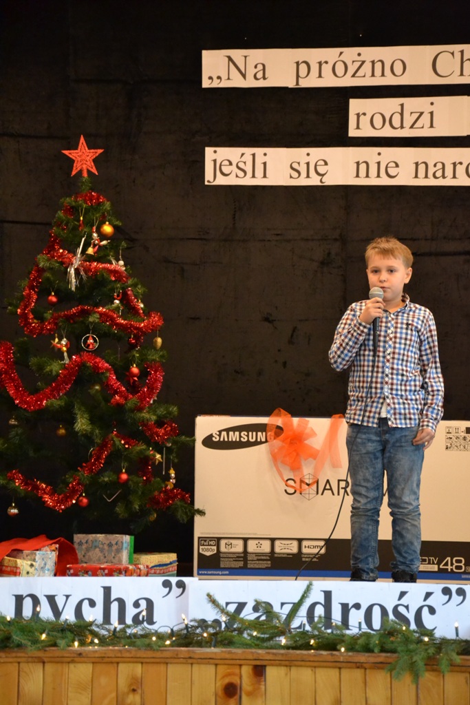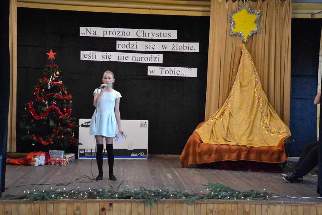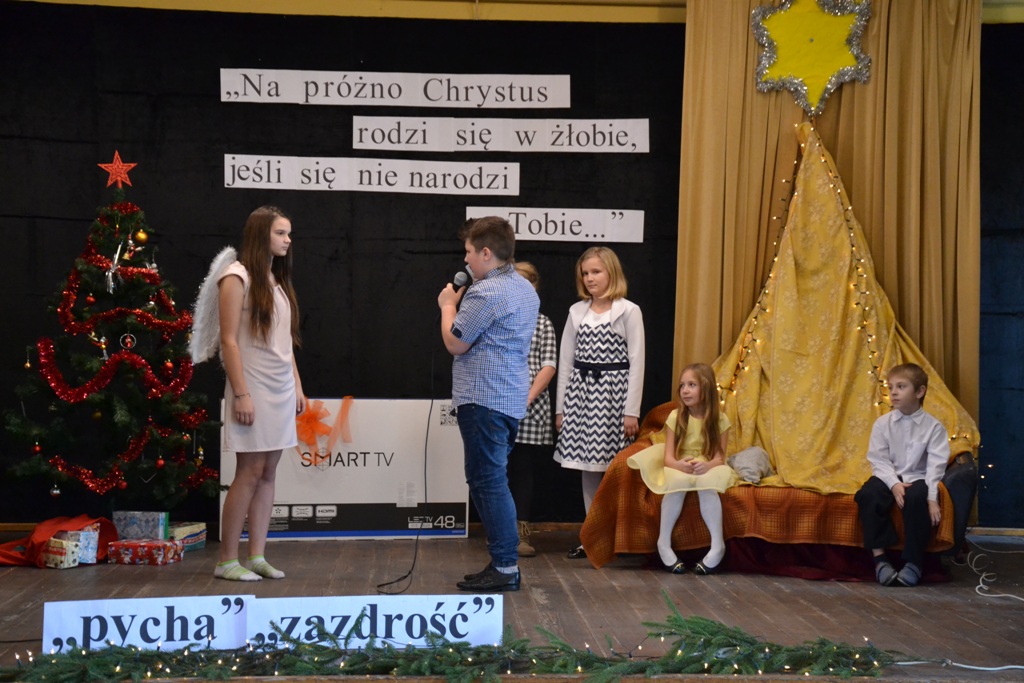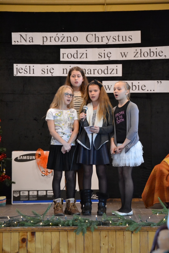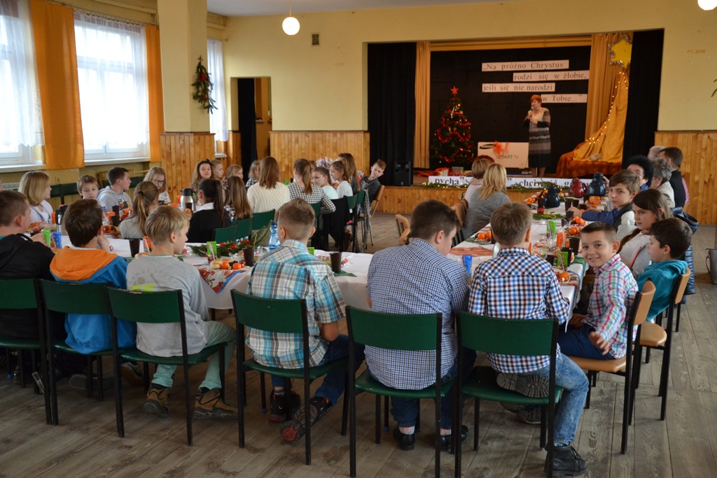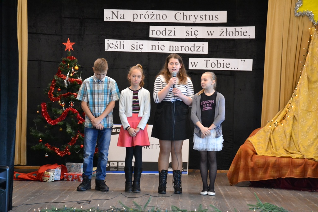 Po spektaklu w wykonaniu dzieci, zaproszeni goście złożyli wszystkim życzenia świąteczne i podzielono się opłatkiem. Dzieci otrzymały słodkie upominki, a głównym prezentem był przeznaczony do Świetlicy Środowiskowej 48-calowy telewizor marki Samsung, który sprawił dzieciom wielką radość. Telewizor bedzie służył wszystkim uczestnikom Świelicy Środowiskowej nie tylko w rozrywce, ale także w nauce i wypełnianiu wolnego czasu.