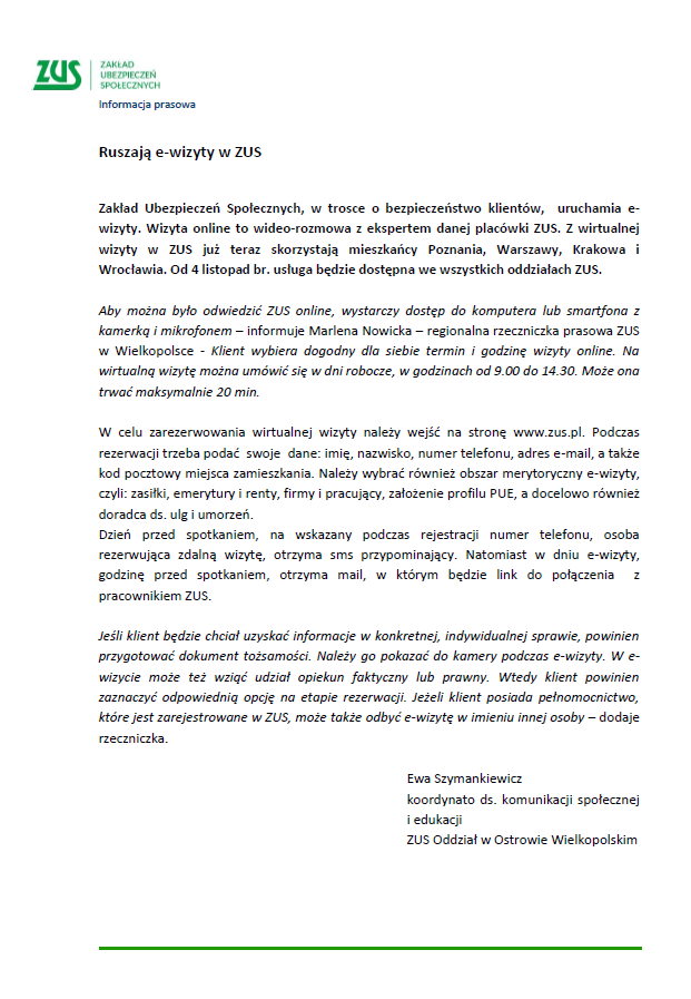 Usługa e-wizyty w ZUS