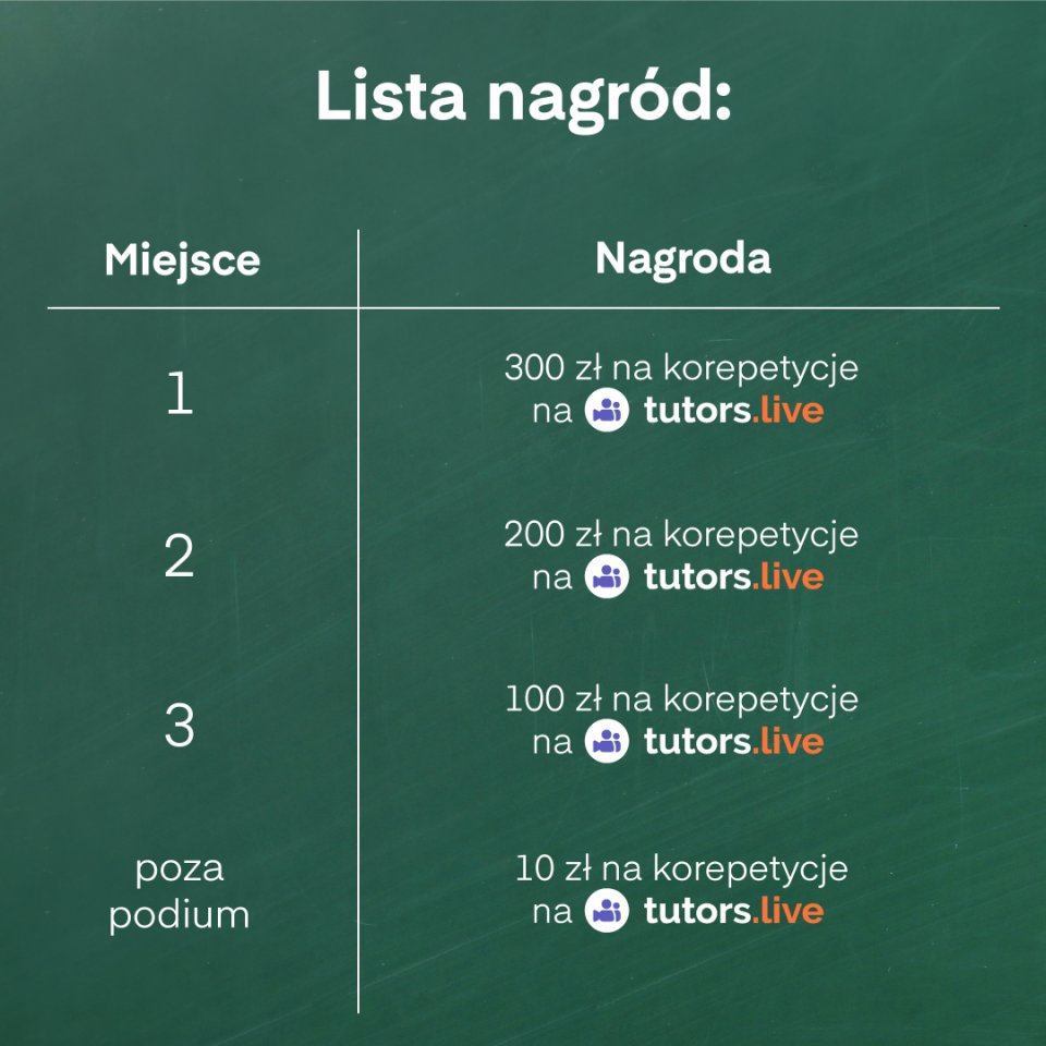 Warto postarać się o dobry wynik, ponieważ organizatorzy przygotowali nagrody! Powodzenia!