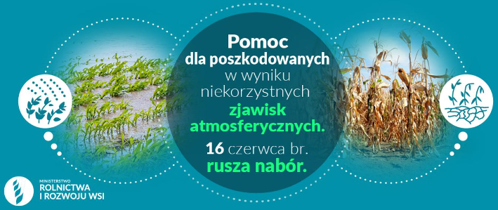 Więcej informacji: https://www.gov.pl/web/rolnictwo/pomoc-dla-poszkodowanych-w-wyniku-zjawisk-atmosferycznych