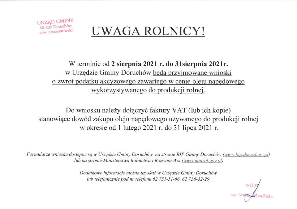 tel.: +48.627363221, fax: +48.627363240, email: ug@doruchow.pl, http://www.doruchow.pl