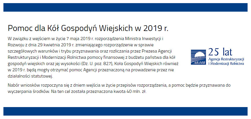 Ogłoszenia ARiMR w sprawie Koła Gospodyń Wiejskich oraz zmiany czasu