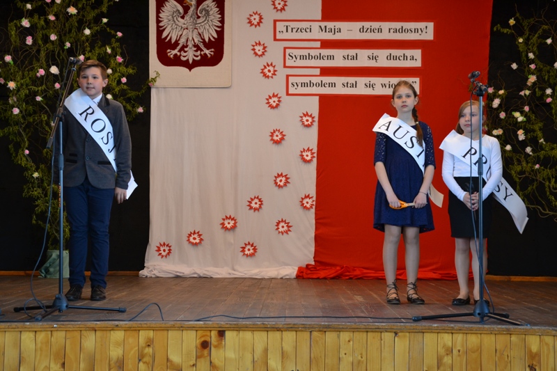 Tegoroczne Obchody Święta 3 Maja w Gminie Doruchów rozpoczęła w dniu 29 kwietnia o godz. 13:00 Akademia okolicznościowa w Gminnym Ośrodku Kultury w Doruchowie. Historię uchwalenia Konstytucji 3 maja przybliżyli publiczności uczniowie Szkoły Podstawowej w Doruchowie pod przewodnictwem pani Beaty Płachty.