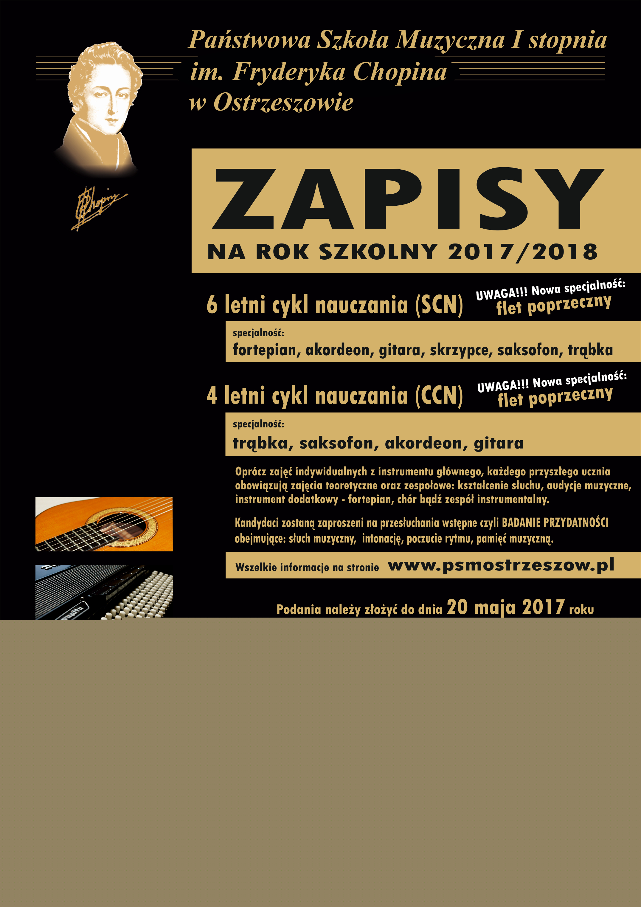 Przekazujemy informację o naborze do Szkoły Muzycznej I stopnia w Ostrzeszowie. Podania można składać do 20 maja 2017r.