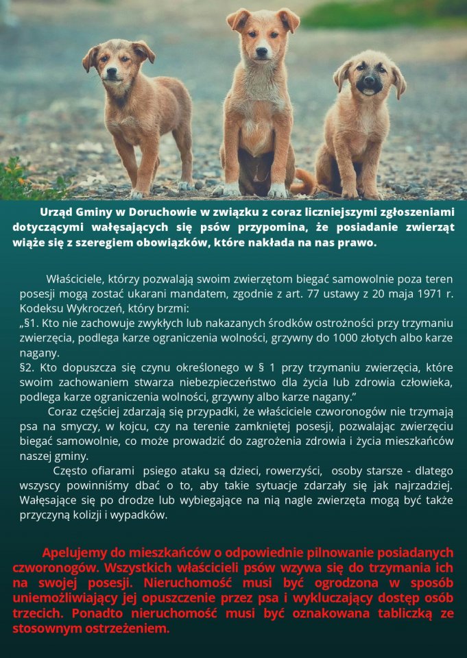 APEL DO MIESZKAŃCÓW - wałęsające się psy